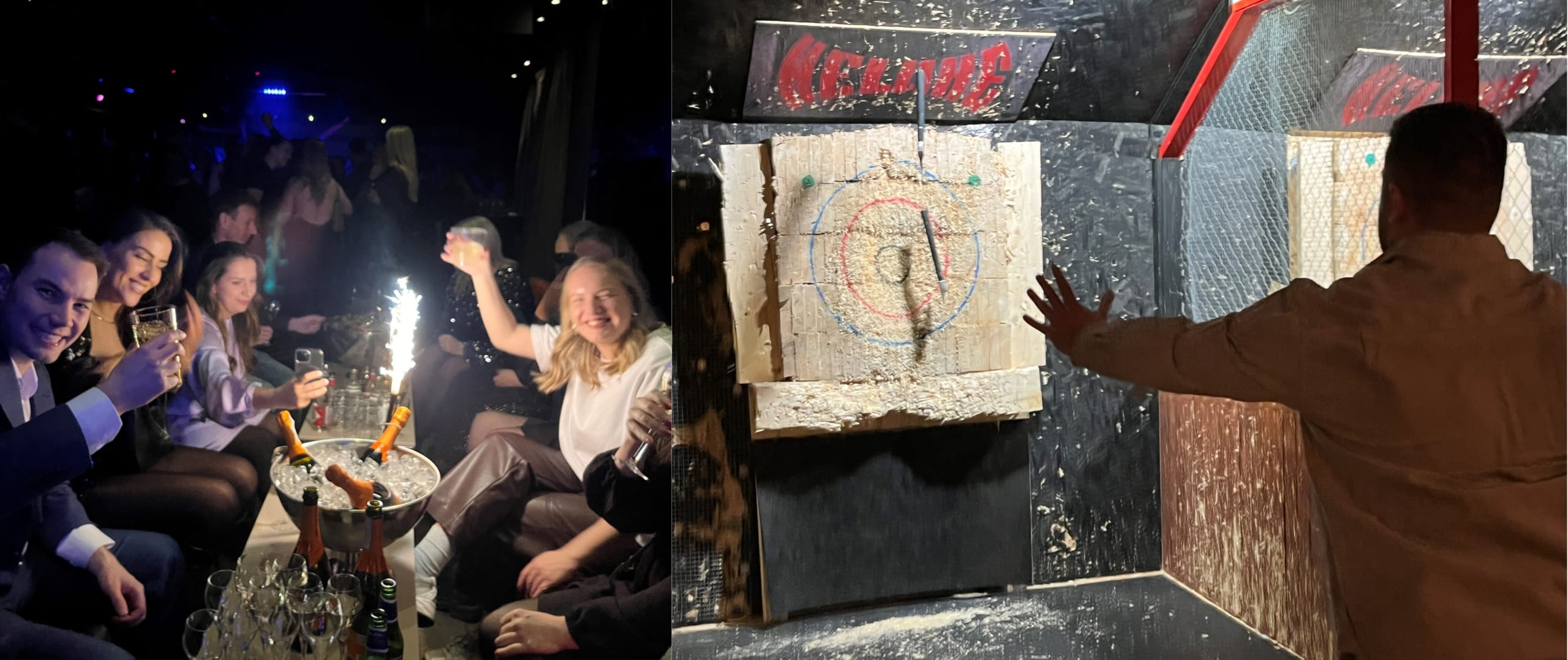 Jurentialaiset kokoontuivat 24 hengen voimin mittelemään pikkujouluhengessä paremmuuttaan kirveenheitossa, viini-tastingissa sekä illan istunnassa. Päätimme edetä edellisessä järjestyksessä, vaikka lisäjännitystä olisi saatu kääntämällä ohjelma toisin päin. Hauskaa oli jälleen! 😊